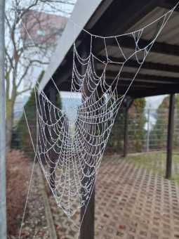 Titel " Spinnennetz mit Morgenfrost"