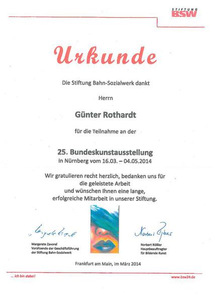 Vernissage und Ausstellung ausgewählter Werke - 25. Bundeskunstausstellung der Stiftung BSW in Nürnberg 2014