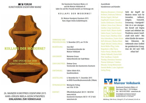 Vernissage und Austellung ausgewählter Werke - Kunstverein Eisenturm Mainz in der Volksbank Mainz 2015