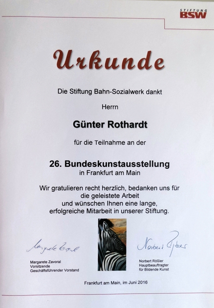 Vernissage und Ausstellung 2er meiner Werke - 26. Bundeskunstausstellung der Stiftung BSW in Frankfurt am Main 2016